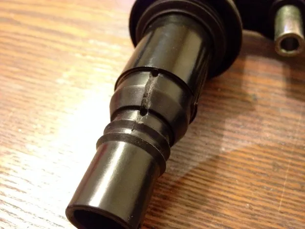 - Запах гари и специфичная полоска на изоляторе, как показано на фото ниже, говорят о пробое катушки.