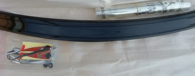 Установка «полноценного» спойлера типа «лимузин», «рейсер», «динамик». Потребуется дрель, сверло на «6», отвёртки с разными насадками, ветошь. По внешнему периметру оклеивается специальная разметочная плёнка, поставляемая в комплекте. На поверхности полимера нанесены точки – места, в которых следует сделать отверстия для фиксации.
