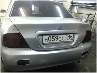 - С черным корпусом габаритных огней и затемненным стеклом секции заднего хода и указателя поворота. Такие фонари устанавливаются на Лансер 9 в комплектации Ralliart.