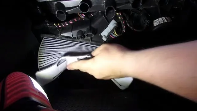 - для доступа к корпусу фильтра необходимо снять декоративную пластиковую шумоизолирующую накладку, которая находится под бардачком в ногах;