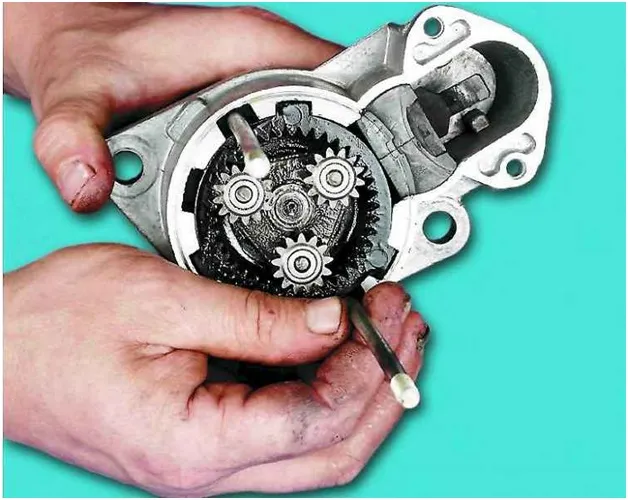 В планетарном редукторе имеется смазка. Со временем она загустевает и стартер начинает менее интенсивно вращать коленчатый вал. Поэтому при разборке важно промыть шестеренки. Во время сборки редуктор должен быть заполнен свежей смазкой.